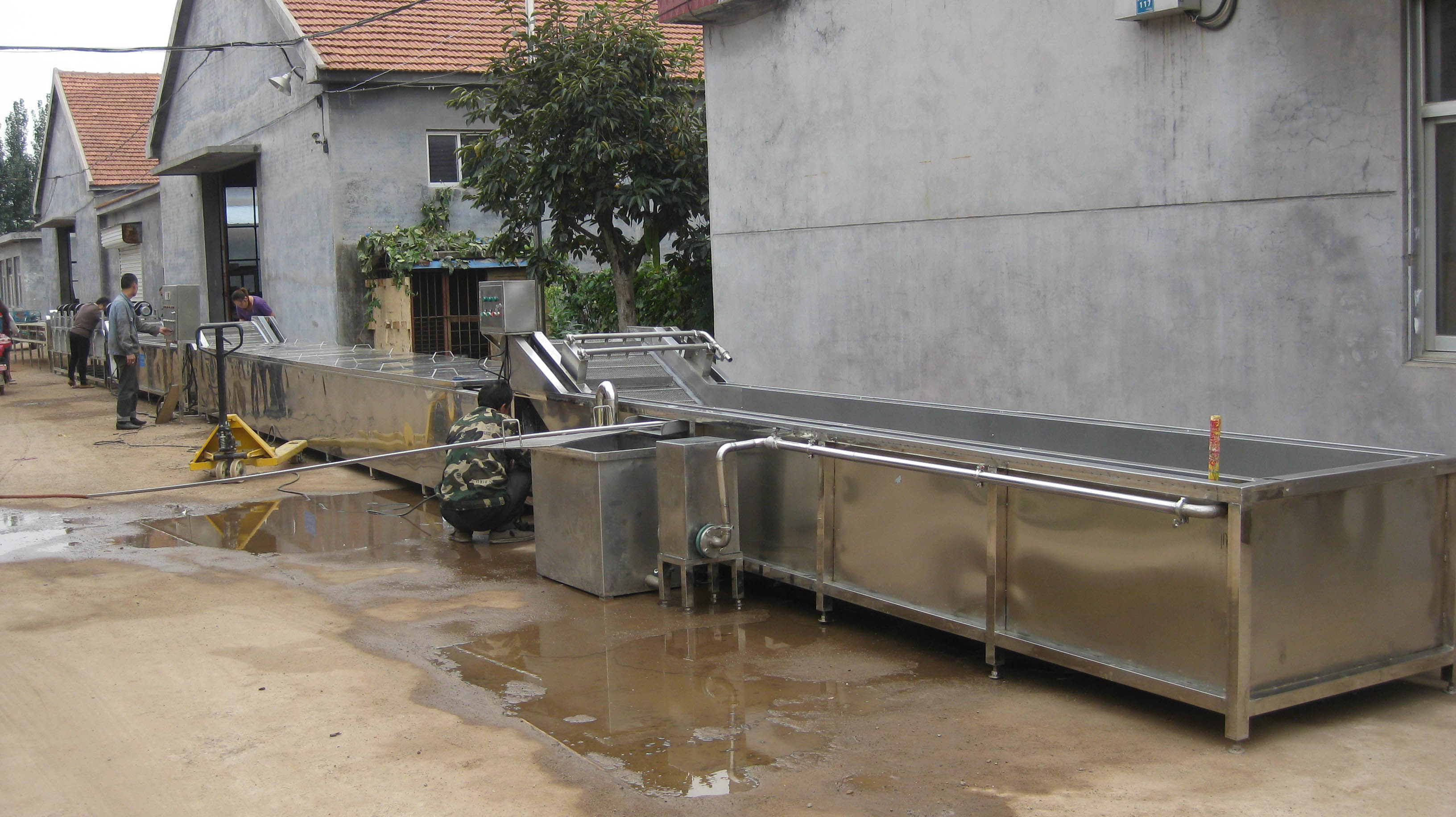 C:這是凈菜加工的可選設備,用于菠菜,油菜等蔬菜的護色操作,也可用于包裝后的產品的殺菌。清洗設備都是304不銹鋼制作,設備的長寬高根據工廠的產量和車間規劃進行設備的設計
