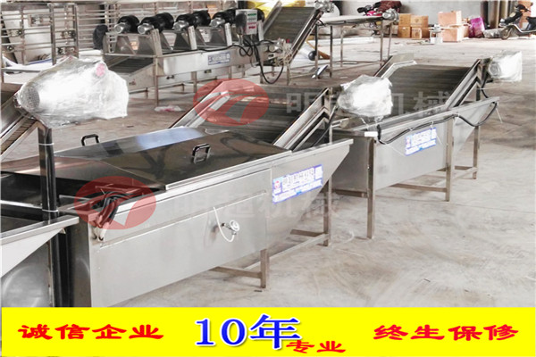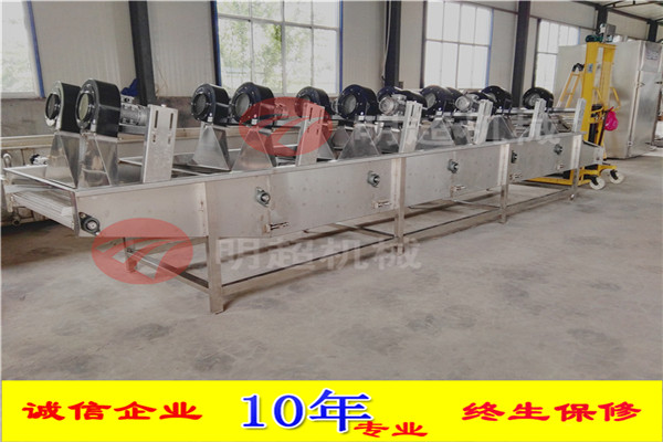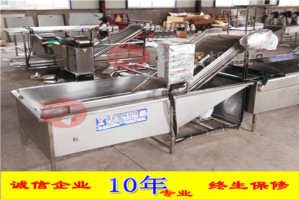 開始將沙果投入到設備里面浸泡,浸泡1小時,然后通過網帶輸送到殺青機里面,形成流水線。整機采用sus304不銹鋼制作,電機和鼓風機除外。網帶速度可調,水可循環利用